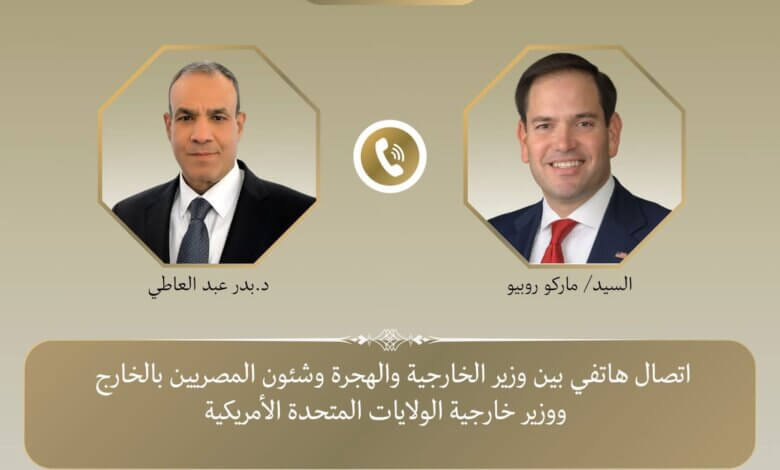 شهد مساء أمس، اتصال هاتفي بين الدكتور بدر عبد العاطي، وزير الخارجية والهجرة، و “ماركو روبيو” وزير خارجية الولايات المتحدة الأمريكية.