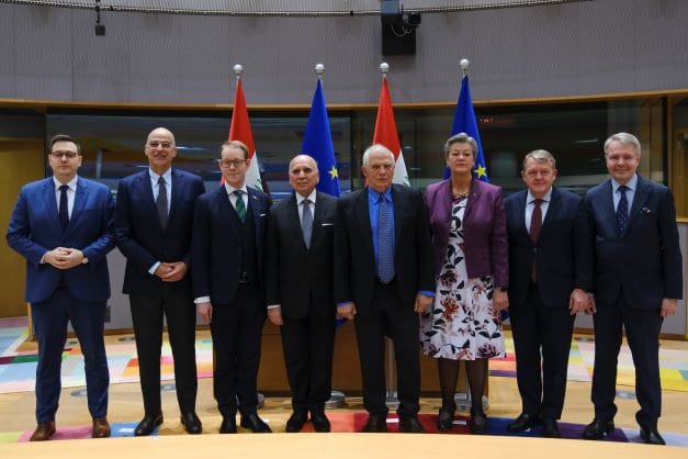 وأشاد الاتحاد الأوروبي بالدور الدبلوماسي البنّاء للعراق في تعزيز الحوار وخفض التصعيد في منطقة الشرق الأوسط، مجدداً دعمه القوي لسيادة العراق ووحدة أراضيه. كما أعرب العراق عن تقديره لمساهمة بعثة الاتحاد الأوروبي الاستشارية في العراق (EUAM Iraq) في إصلاح قطاع الأمن المدني.