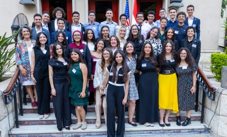 استضافت السفيرة الأمريكية هيرو مصطفى، حفل استقبال لتكريم 35 طالبًا مصريًا متميزًا من المرحلة الثانوية، تم اختيارهم للمشاركة في برنامج التبادل والدراسة للشباب كينيدي-لوغار (KL-YES) للعام الأكاديمي 2025-2026.