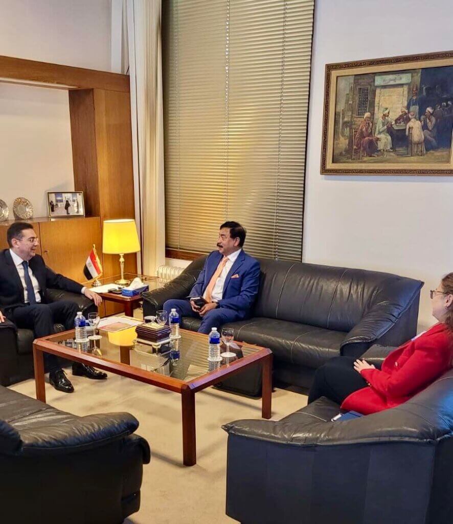 استقبل السفير عماد حنا بمقر السفارة في لاهاي السفير شيخ محمد بلال، المدير التنفيذي للصندوق المشترك للسلع الأساسية CFC، حيث تناول الجانبان آفاق تعزيز التعاون بين مصر والصندوق.