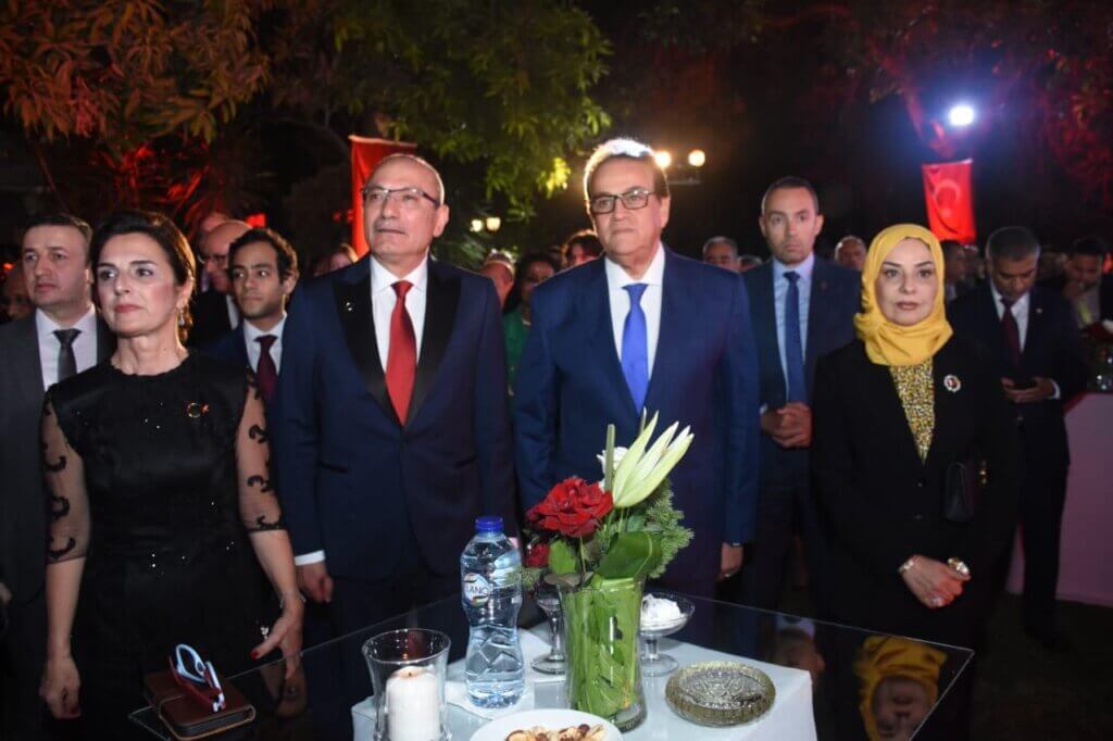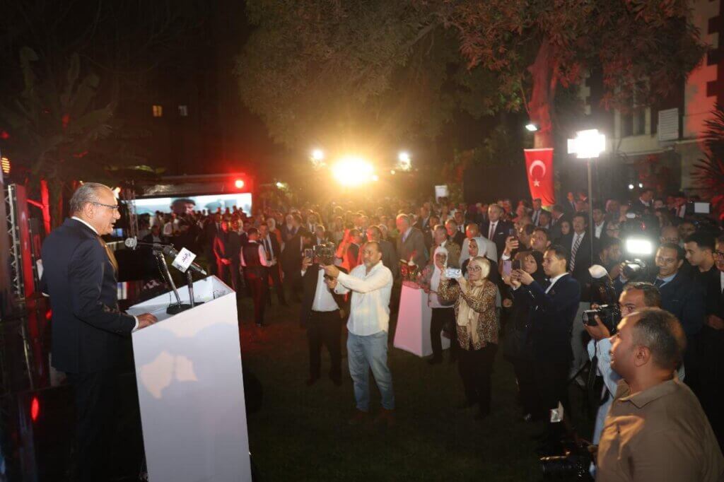 واحتفى سفير تركيا صالح موطلو شن بإنجازات بلاده خلال الحفل الذي أقامه بمنزله ، فقال إن تركيا في الذكرى الـ 101 للتأسيس، وفي ظل الإرادة الحازمة والصلبة للرئيس رجب طيب أردوغان، أصبحت الآن بعدد سكانها البالغ 85 مليون نسمة، من بين الدول العشر الرائدة في العالم، في الصناعة، والتكنولوجيا، والثقافة، والصحة، والرياضة، والدفاع.