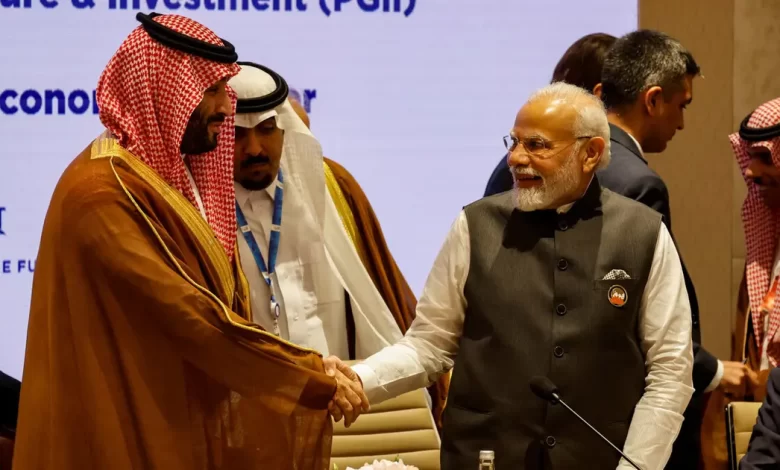 وأضاف ولي العهد في كلمة له على هامش انعقاد فعاليات منتدى الاستثمار السعودي الهندي، الذي يعقد على هامش زيارته الرسمية إلى الهند، إن “الممر الاقتصادي سيحقق المصالح المشتركة لدولنا من خلال تعزيز الترابط الاقتصادي وما ينعكس إيجابا على شركائنا من الدول الأخرى والاقتصاد العالمي بصورة عامة”.