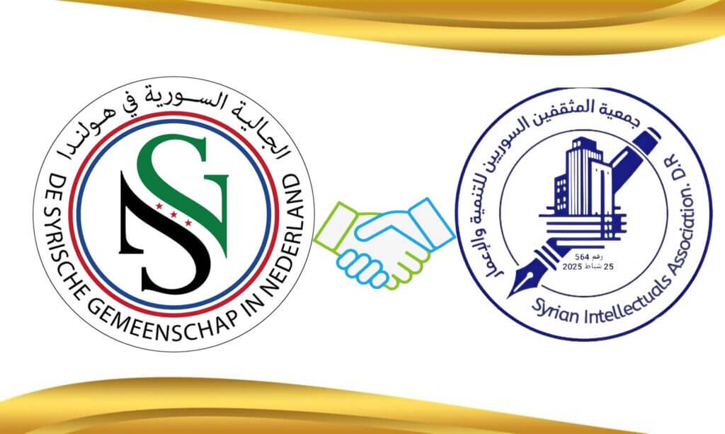 في خطوة جديدة نحو تعزيز التعاون السوري-السوري بين الداخل والخارج، وقّعت الجالية السورية في هولندا وجمعية المثقفين السوريين للتنمية والإعمار في سوريا مذكرة تفاهم تهدف إلى تنسيق الجهود بين الطرفين في مجالات إعادة الإعمار والتنمية المجتمعية والثقافية والتعليمية.