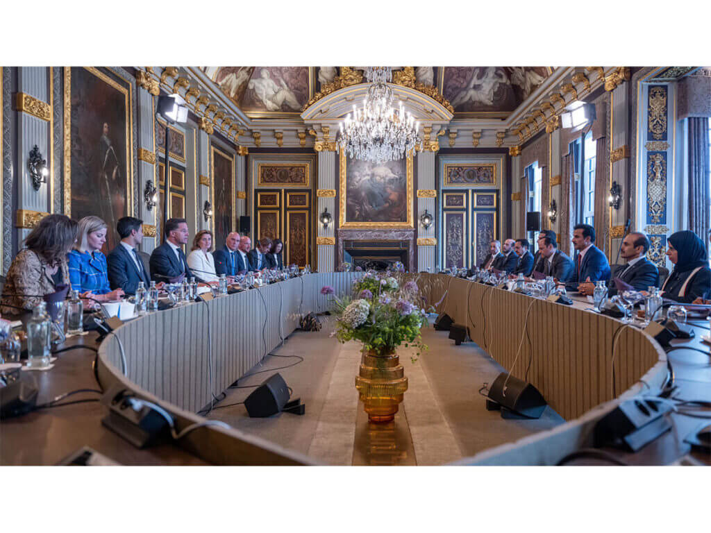 خاطب مارك روته أمير قطر بقوله: “هذه الزيارة هي حقا معلم هام في علاقتنا. ويجب الإشارة هنا إلى دوركم في العديد من المجالات. وأولا، بالطبع الآن في ظل الحرب المستمرة بين إسرائيل وحماس، من المهم جدًا الدور الذي تلعبونه كوسيط في هذا الصراع. وأريد حقًا أن أؤكد هنا على أن دوركم حاسم في دفع وقف إطلاق النار. أعلم أنكم وفريقكم بأكمله يعمل على هذا الأمر وبطاقة هائلة. أريد أن أشكركم على ذلك.”