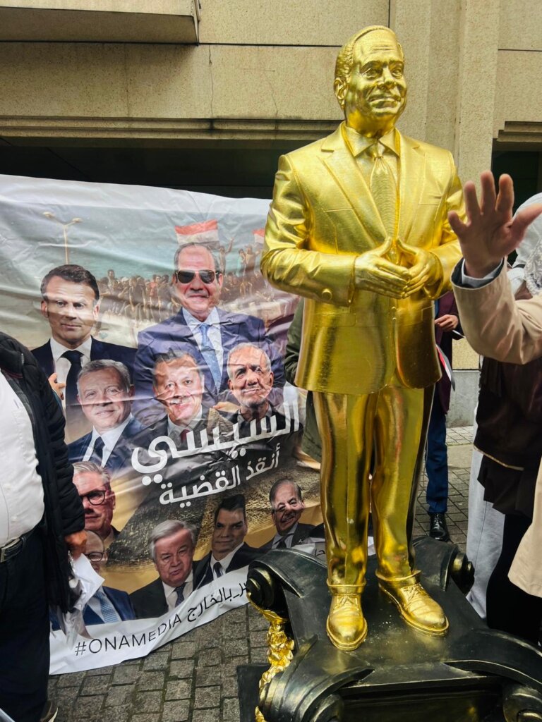 تمثالًا ذهبيًا للرئيس عبد الفتاح السيسي، رئيس جمهورية مصر العربية، اكتسب جماهيرية واسعة عبر مواقع التواصل الاجتماعي، فيسبوك، وإنستجرام، بعد انتشاره اليوم، فور وصول الرئيس المصري للعاصمة البلجيكية بروكسل .