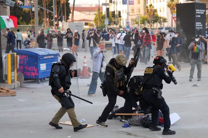 أعلنت السلطات الأميركية، فجر الإثنين، أن وسط مدينة لوس أنجلوس أصبح رسميًا منطقة “تجمع غير قانوني”، في أعقاب ثلاثة أيام متواصلة من المواجهات العنيفة بين المتظاهرين وقوات إنفاذ القانون، على خلفية الأوامر الصارمة التي أصدرها الرئيس دونالد ترامب بشأن ملف الهجرة.