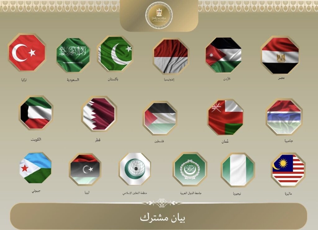 وتحذّر هذه الدول من استمرار السياسات، والممارسات الإسرائيلية، الأحادية، وغير القانونية، وتدعو المجتمع الدولي إلى تحمّل مسؤولياته القانونية والأخلاقية، وإلزام إسرائيل بوقف تصعيدها الخطير، وإجراءاتها اللا شرعية في الأراضي الفلسطينية المحتلة، وإلى تلبية الحقوق المشروعة للشعب الفلسطيني في إقامة دولته المستقلة، وذات السيادة على خطوط الرابع من حزيران ١٩٦٧، وعاصمتها القدس الشرقية سبيلًا وحيدًا لتحقيق السلام العادل والشامل الذي يضمن الأمن والاستقرار في المنطقة.