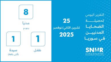 مقتل ما لا يقل عن 8 مدنيين بينهم 1طفل و 1سيدة ، جراء عمليات قتل خارج نطاق القانون في مناطق متفرقة من سوريا