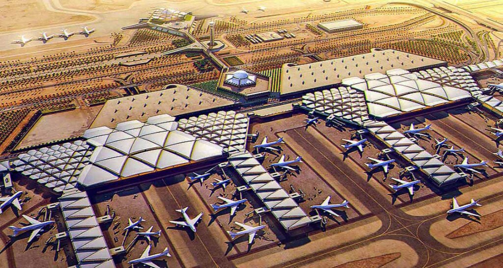 كما أعلن عن خطط لدمج وتطوير مطار الملك خالد ليصبح مطار الملك سلمان الدولي ليمتد على مسافة 57 كم2 في الرياض بطاقة استيعابية تبلغ 120 مليون مسافر بحلول العام 2030 و185 مليون مسافر بحلول العام 2050، ويحوي 6 مدارج، فيما تبلغ الطاقة الاستيعابية لمطار الرياض حالياً نحو 35 مليون مسافر. وهذا سيجعل هذا المطار الأكبر على مستوى العالم والمنطقة حيث أن مطار دبي سعته الحالية 92 مليون مسافر ومطار الدوحة تبلغ سعته 55 مليون مسافر. كما سيفتتح عام 2023 افتتاح مطار البحر الأحمر الدولي بسعة 1 مليون مسافر مبدئياً سويتم توسعته مستقبلاً ليواكب المشاريع الكبرى التي تقام هناك مثل مشروع (نيوم)، وأيضاً سيتم إطلاق شركة (نيوم للطيران) عام 2024 لتخدم هذه المناطق العمرانية الجديدة.