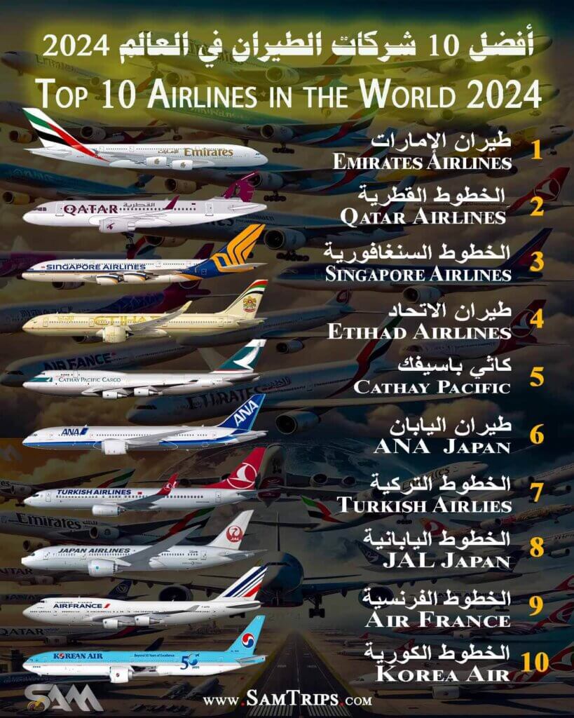 أفضل 10 شركات طيران في العالم 2024